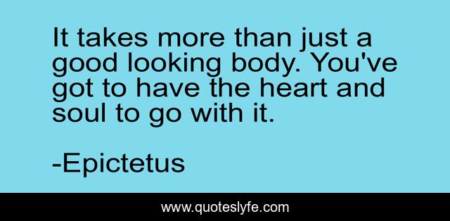 This page presents the quote "It takes more than just a good looking body. You've got to have the heart and soul to go with it.". Author of this quote is Epictetus. This quote is about heart, health, soul,.