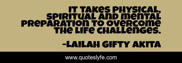 This page presents the quote "It takes physical, spiritual and mental preparation to overcome the life challenges.". Author of this quote is Lailah Gifty Akita. This quote is about challenges, overcomer, winners-mentality,.