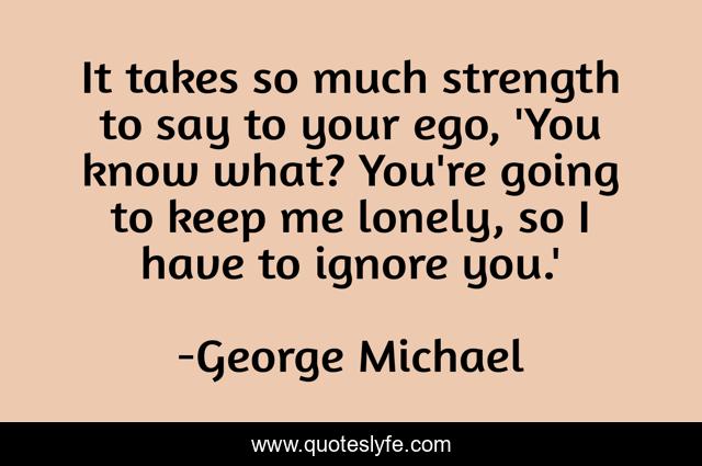 This page presents the quote "It takes so much strength to say to your ego, 'You know what? You're going to keep me lonely, so I have to ignore you.'". Author of this quote is George Michael. This quote is about me, lonely, ego,.