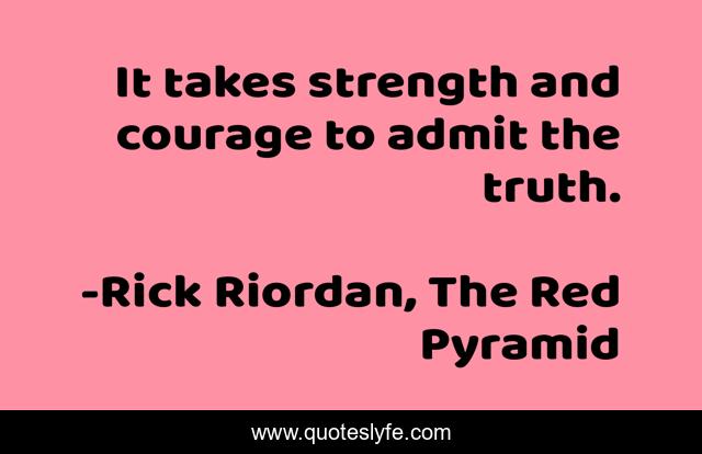 This page presents the quote "It takes strength and courage to admit the truth.". Author of this quote is Rick Riordan, The Red Pyramid. This quote is about courage, honesty, truth-telling, self-disclosure,.