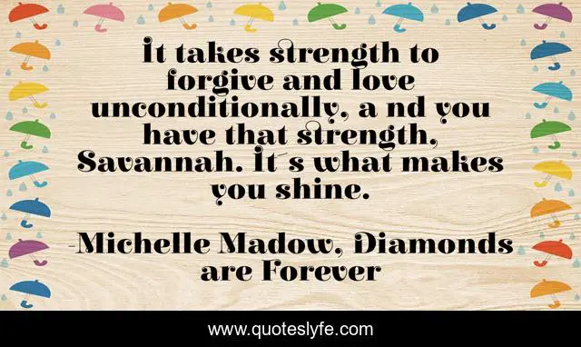"Michelle Madow, Diamonds are Forever Quotes." Quoteslyfe.com, 2025. Sat. 06 Dec. 2025. <https://www.quoteslyfe.com/quote/It-takes-strength-to-forgive-and-love-104194>.