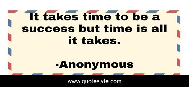 This page presents the quote "It takes time to be a success but time is all it takes.". Author of this quote is Anonymous. .