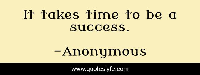 This page presents the quote "It takes time to be a success.". Author of this quote is Anonymous. .