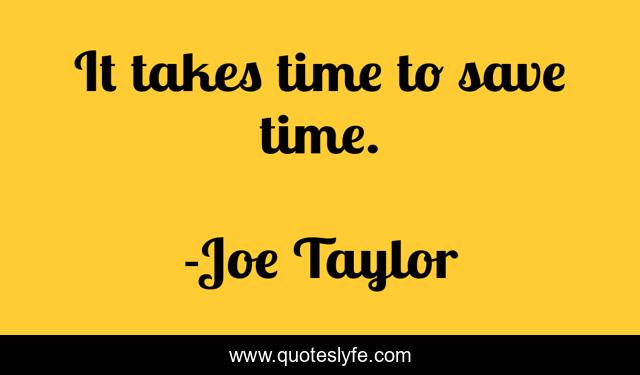 This page presents the quote "It takes time to save time.". Author of this quote is Joe Taylor. .