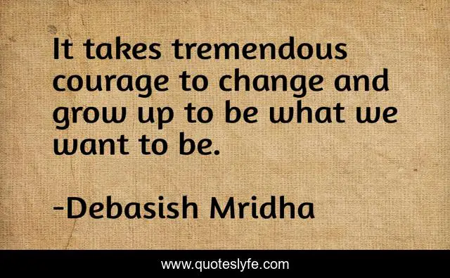 This page presents the quote "It takes tremendous courage to change and grow up to be what we want to be.". Author of this quote is Debasish Mridha. This quote is about philosophy, grow-up-to-what-you-want-to-be, mridha, debasish, debasish-mridha, courage, tremendous-courage,.