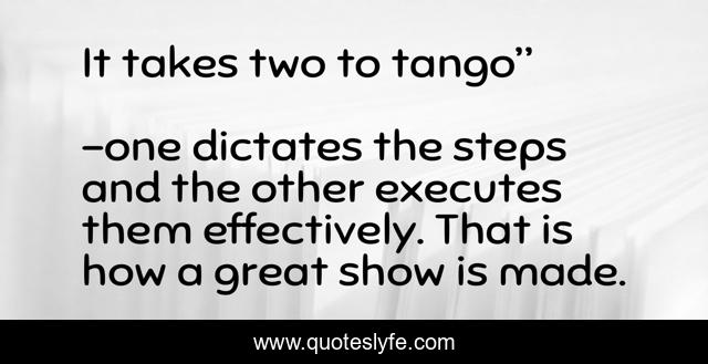 "one dictates the steps and the other executes them effectively. That is how a great show is made. Quotes." Quoteslyfe.com, 2025. Fri. 05 Dec. 2025. <https://www.quoteslyfe.com/quote/It-takes-two-to-tango-120801>.