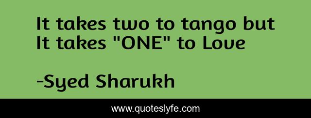 This page presents the quote "It takes two to tango but It takes "ONE" to Love". Author of this quote is Syed Sharukh. This quote is about true-love, love, inspired, motivate, love-story, affection,.