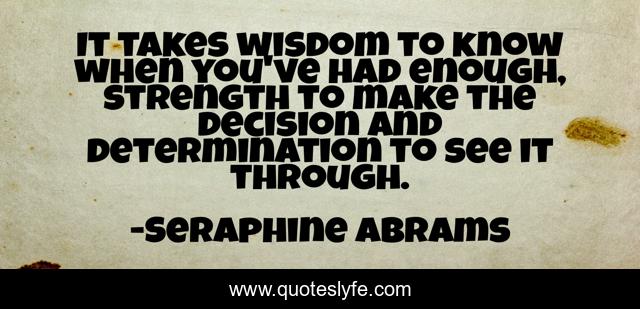 This page presents the quote "It takes wisdom to know when you've had enough, strength to make the decision and determination to see it through.". Author of this quote is Seraphine Abrams. This quote is about elements, gods-and-goddesses, science-fiction, romance, adventure, mysicism, angels, new-age,.