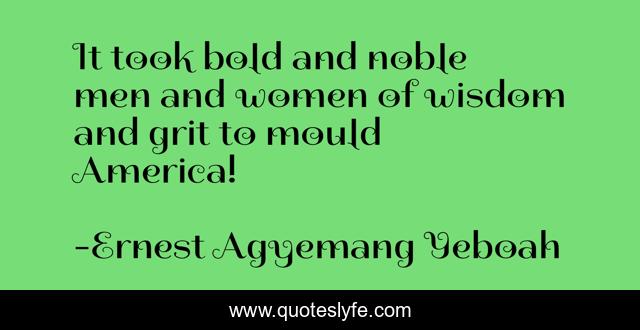 This page presents the quote "It took bold and noble men and women of wisdom and grit to mould America!". Author of this quote is Ernest Agyemang Yeboah. .