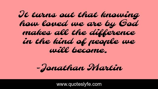 This page presents the quote "It turns out that knowing how loved we are by God makes all the difference in the kind of people we will become.". Author of this quote is Jonathan Martin. This quote is about god, love, identity, affection,.