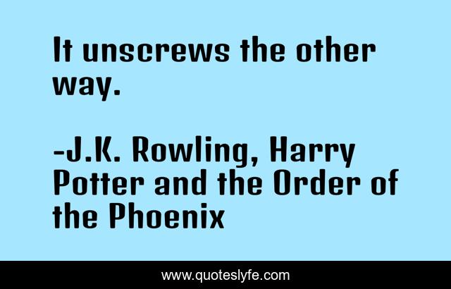 This page presents the quote "It unscrews the other way.". Author of this quote is J.K. Rowling, Harry Potter and the Order of the Phoenix. .