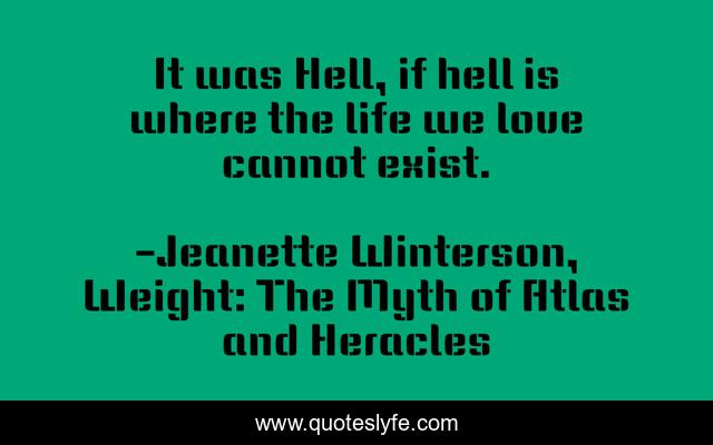 This page presents the quote "It was Hell, if hell is where the life we love cannot exist.". Author of this quote is Jeanette Winterson, Weight: The Myth of Atlas and Heracles. This quote is about living, life,.