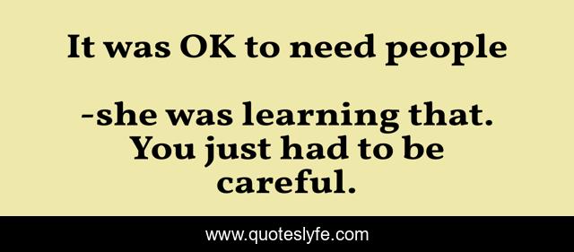 "she was learning that. You just had to be careful. Quotes." Quoteslyfe.com, 2025. Tue. 09 Dec. 2025. <https://www.quoteslyfe.com/quote/It-was-OK-to-need-people-117578>.