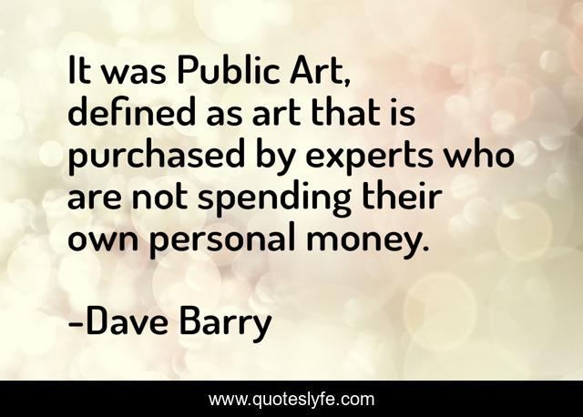 This page presents the quote "It was Public Art, defined as art that is purchased by experts who are not spending their own personal money.". Author of this quote is Dave Barry. This quote is about personal, money, experts,.