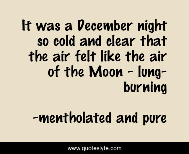 "mentholated and pure Quotes." Quoteslyfe.com, 2025. Tue. 09 Dec. 2025. <https://www.quoteslyfe.com/quote/It-was-a-December-night-so-cold-165389>.