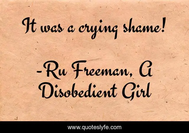 "Ru Freeman, A Disobedient Girl Quotes." Quoteslyfe.com, 2025. Sat. 06 Dec. 2025. <https://www.quoteslyfe.com/quote/It-was-a-crying-shame-236768>.