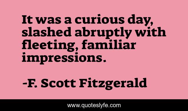 This page presents the quote "It was a curious day, slashed abruptly with fleeting, familiar impressions.". Author of this quote is F. Scott Fitzgerald. This quote is about winter, dreams,.