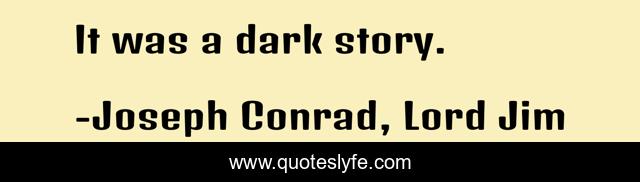 This page presents the quote "It was a dark story.". Author of this quote is Joseph Conrad, Lord Jim. This quote is about death, adultery, short, dark, kidnapping, marriage, theft, ominous, pirate,.