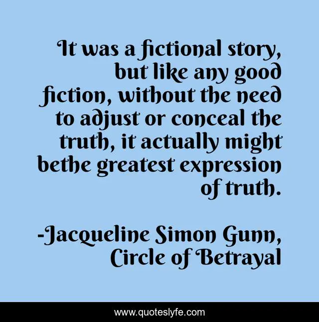 "Jacqueline Simon Gunn, Circle of Betrayal Quotes." Quoteslyfe.com, 2025. Fri. 05 Dec. 2025. <https://www.quoteslyfe.com/quote/It-was-a-fictional-story-but-like-100770>.