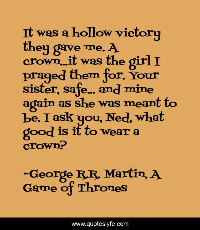 "George R.R. Martin, A Game of Thrones Quotes." Quoteslyfe.com, 2025. Sat. 06 Dec. 2025. <https://www.quoteslyfe.com/quote/It-was-a-hollow-victory-they-gave-115488>.