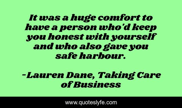 This page presents the quote "It was a huge comfort to have a person who'd keep you honest with yourself and who also gave you safe harbour.". Author of this quote is Lauren Dane, Taking Care of Business. This quote is about comfort, honesty, friend,.