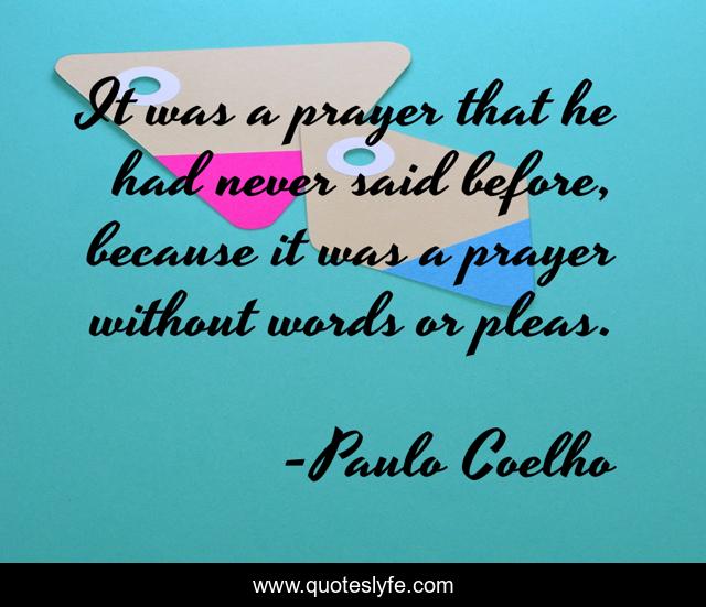 This page presents the quote "It was a prayer that he had never said before, because it was a prayer without words or pleas.". Author of this quote is Paulo Coelho. .