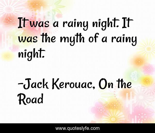 This page presents the quote "It was a rainy night. It was the myth of a rainy night.". Author of this quote is Jack Kerouac, On the Road. This quote is about rainy-night, myth, rain,.