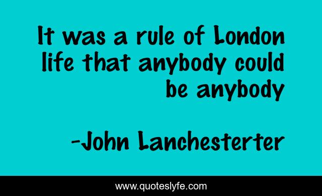 This page presents the quote "It was a rule of London life that anybody could be anybody". Author of this quote is John Lanchesterter. This quote is about rules, city, life, london,.