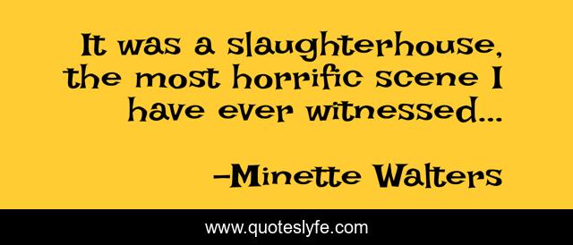 This page presents the quote "It was a slaughterhouse, the most horrific scene I have ever witnessed...". Author of this quote is Minette Walters. .