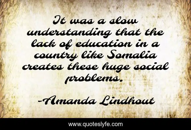 This page presents the quote "It was a slow understanding that the lack of education in a country like Somalia creates these huge social problems.". Author of this quote is Amanda Lindhout. This quote is about problems, understanding,.