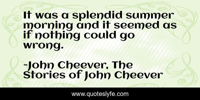 This page presents the quote "It was a splendid summer morning and it seemed as if nothing could go wrong.". Author of this quote is John Cheever, The Stories of John Cheever. This quote is about summer, life,.