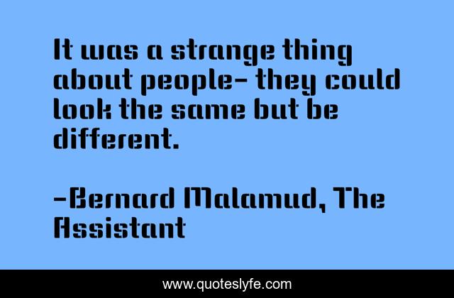 This page presents the quote "It was a strange thing about people- they could look the same but be different.". Author of this quote is Bernard Malamud, The Assistant. .