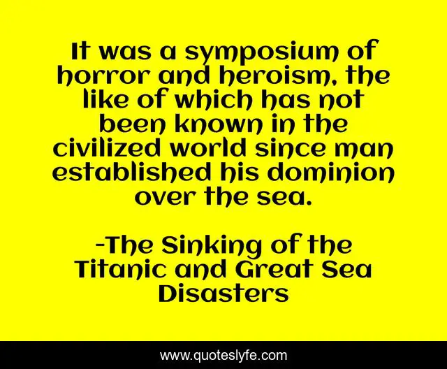 "The Sinking of the Titanic and Great Sea Disasters Quotes." Quoteslyfe.com, 2025. Mon. 08 Dec. 2025. <https://www.quoteslyfe.com/quote/It-was-a-symposium-of-horror-and-198410>.