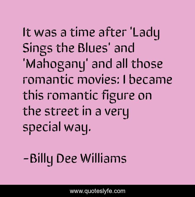 This page presents the quote "It was a time after 'Lady Sings the Blues' and 'Mahogany' and all those romantic movies: I became this romantic figure on the street in a very special way.". Author of this quote is Billy Dee Williams. This quote is about movies, blues, time,.