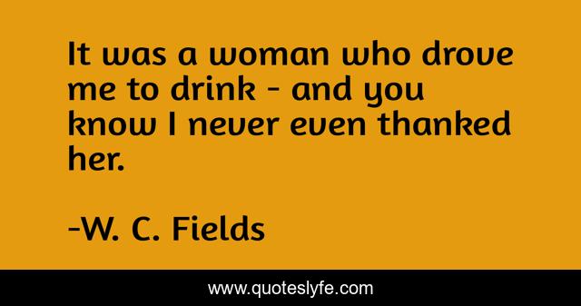 This page presents the quote "It was a woman who drove me to drink - and you know I never even thanked her.". Author of this quote is W. C. Fields. This quote is about , drink, eat, merry,.