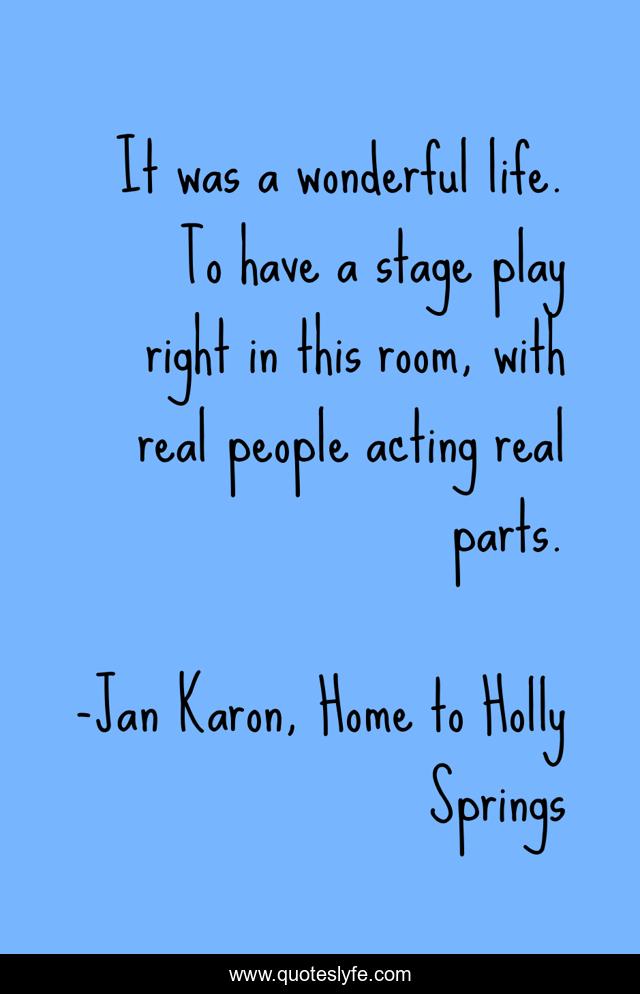 This page presents the quote "It was a wonderful life. To have a stage play right in this room, with real people acting real parts.". Author of this quote is Jan Karon, Home to Holly Springs. This quote is about life, parts, people, play, stage,.