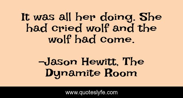 This page presents the quote "It was all her doing. She had cried wolf and the wolf had come.". Author of this quote is Jason Hewitt, The Dynamite Room. This quote is about historical-fiction, psychological-thriller,.