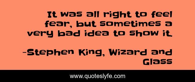 This page presents the quote "It was all right to feel fear, but sometimes a very bad idea to show it.". Author of this quote is Stephen King, Wizard and Glass. .