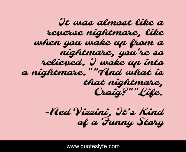 "Ned Vizzini, It's Kind of a Funny Story Quotes." Quoteslyfe.com, 2025. Fri. 05 Dec. 2025. <https://www.quoteslyfe.com/quote/It-was-almost-like-a-reverse-nightmare-3643>.