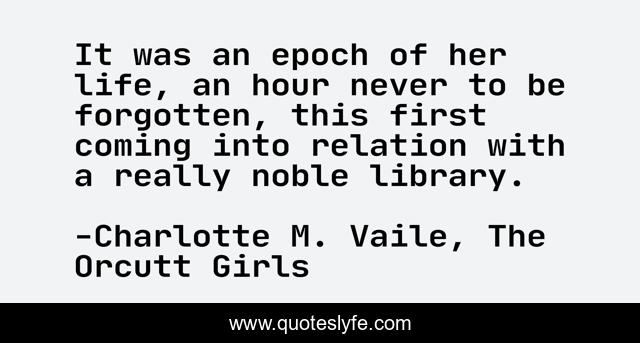 This page presents the quote "It was an epoch of her life, an hour never to be forgotten, this first coming into relation with a really noble library.". Author of this quote is Charlotte M. Vaile, The Orcutt Girls. .
