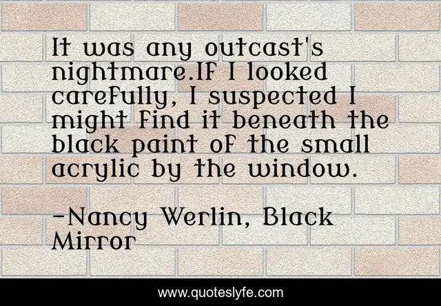 "Nancy Werlin, Black Mirror Quotes." Quoteslyfe.com, 2025. Fri. 05 Dec. 2025. <https://www.quoteslyfe.com/quote/It-was-any-outcast-s-nightmare-If-45358>.