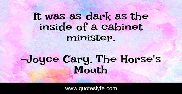 This page presents the quote "It was as dark as the inside of a cabinet minister.". Author of this quote is Joyce Cary, The Horse's Mouth. .