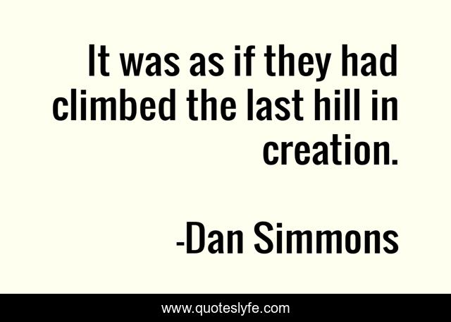 This page presents the quote "It was as if they had climbed the last hill in creation.". Author of this quote is Dan Simmons. This quote is about creation, beauty, nature,.