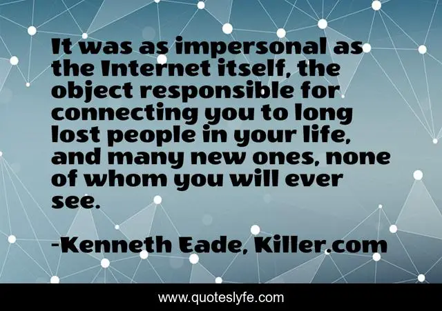 "Kenneth Eade, Killer.com Quotes." Quoteslyfe.com, 2025. Sat. 06 Dec. 2025. <https://www.quoteslyfe.com/quote/It-was-as-impersonal-as-the-Internet-243488>.