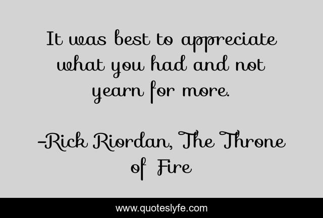 This page presents the quote "It was best to appreciate what you had and not yearn for more.". Author of this quote is Rick Riordan, The Throne of Fire. This quote is about appreciation, contentment,.