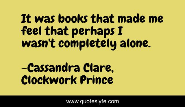 "Cassandra Clare, Clockwork Prince Quotes." Quoteslyfe.com, 2025. Mon. 08 Dec. 2025. <https://www.quoteslyfe.com/quote/It-was-books-that-made-me-feel-138915>.