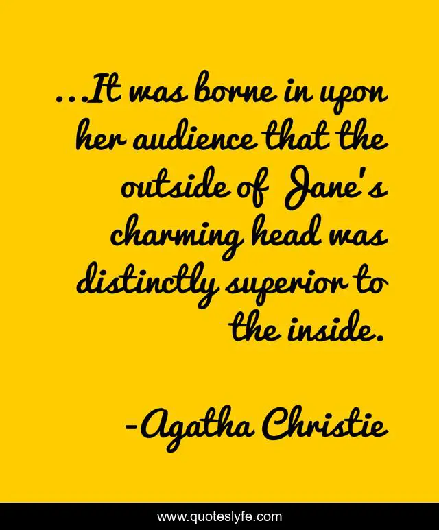 This page presents the quote "...It was borne in upon her audience that the outside of Jane's charming head was distinctly superior to the inside.". Author of this quote is Agatha Christie. This quote is about stupidity, snark,.