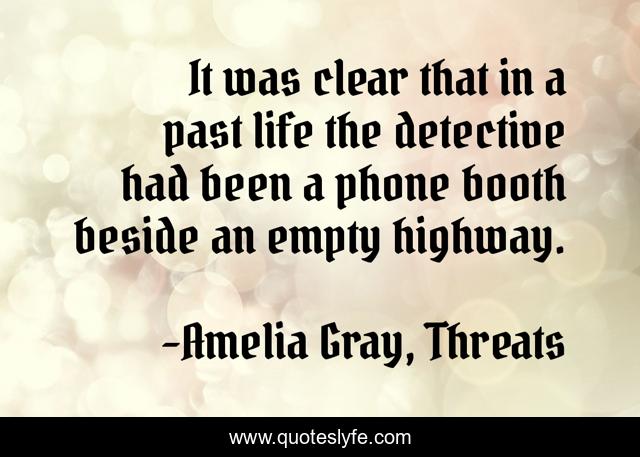 This page presents the quote "It was clear that in a past life the detective had been a phone booth beside an empty highway.". Author of this quote is Amelia Gray, Threats. .