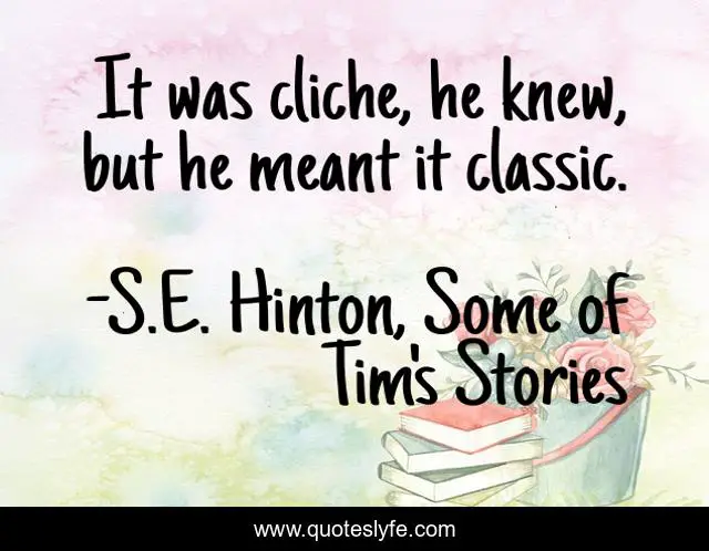 This page presents the quote "It was cliche, he knew, but he meant it classic.". Author of this quote is S.E. Hinton, Some of Tim's Stories. .