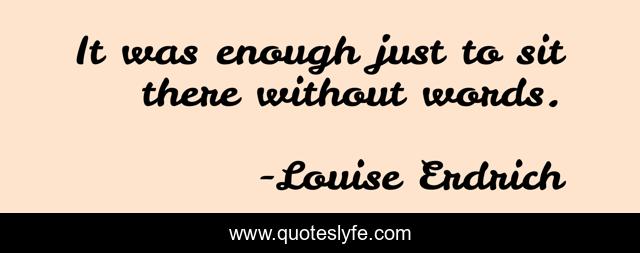This page presents the quote "It was enough just to sit there without words.". Author of this quote is Louise Erdrich. This quote is about control, self,.